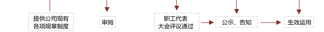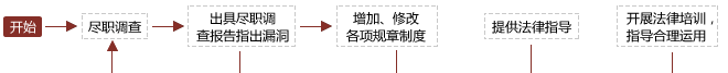 1、审核公司现存制度的合理、合法性; 2、查漏补缺,草拟公司各类缺少的规章制度; 3、指导公司制定各项规章制度的制定流程,避免程序瑕疵; 4、在各项规章制度实际运用过程中,提供专业培训课程,使规章制度能真正落到实处。 |